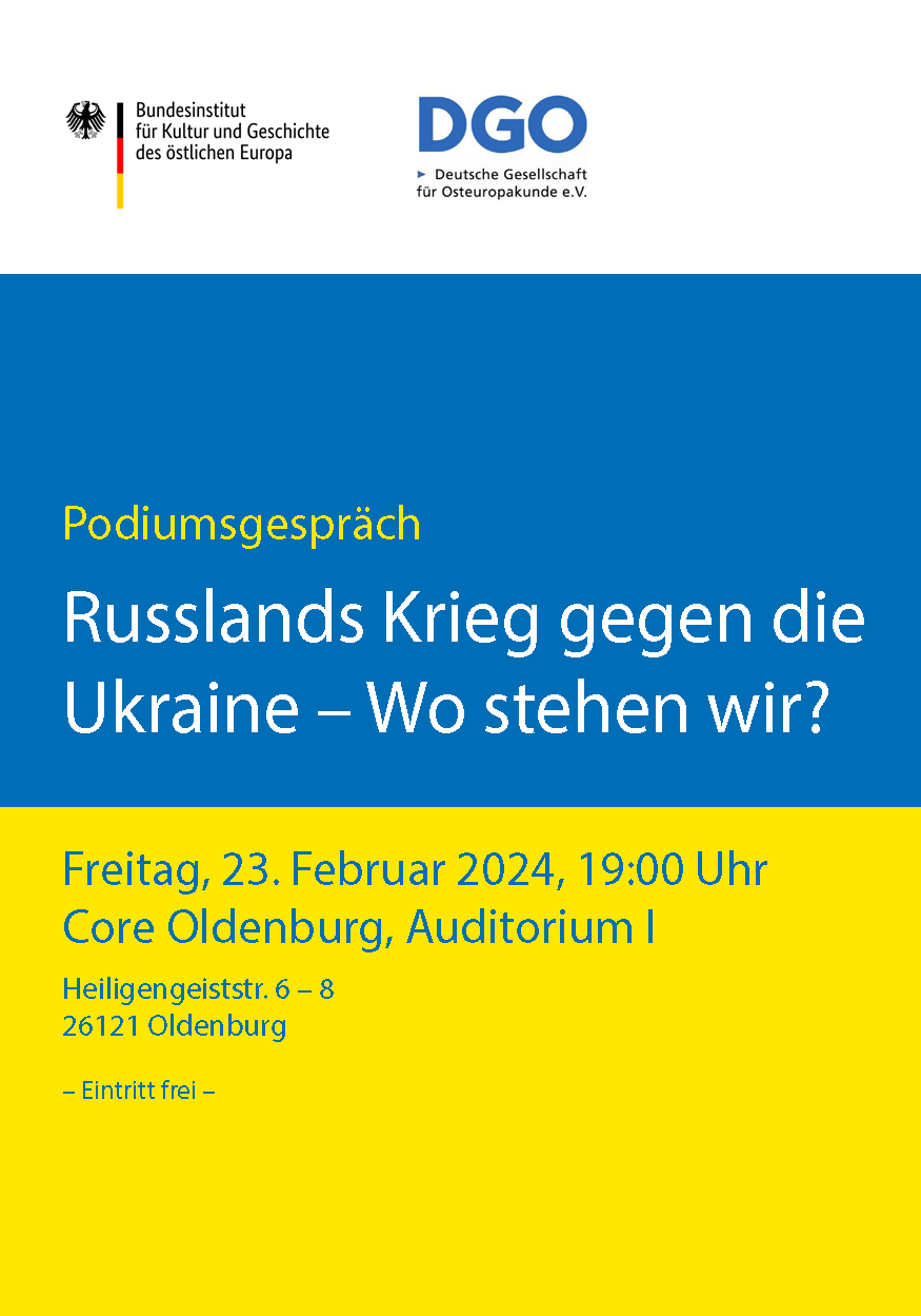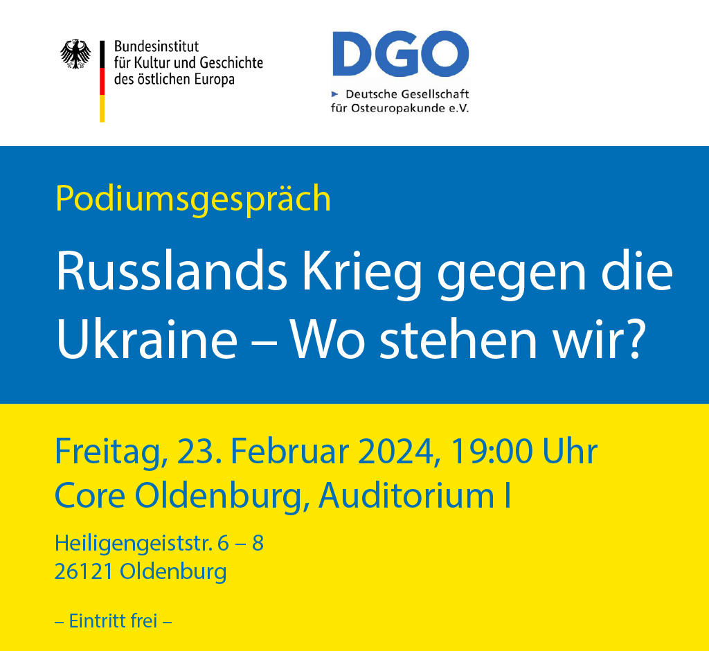 Darüber spricht der Historiker Burkhard Olschowsky vom Bundesinstitut für Kultur und Geschichte des östlichen Europa (BKGE) mit Viola von Cramon, Osteuropa-expertin im Europäischen Parlament, und Olga Tokar, Lehrerin aus Kyiv, die seit ihrer Flucht im März 2022 in Oldenburg lebt.